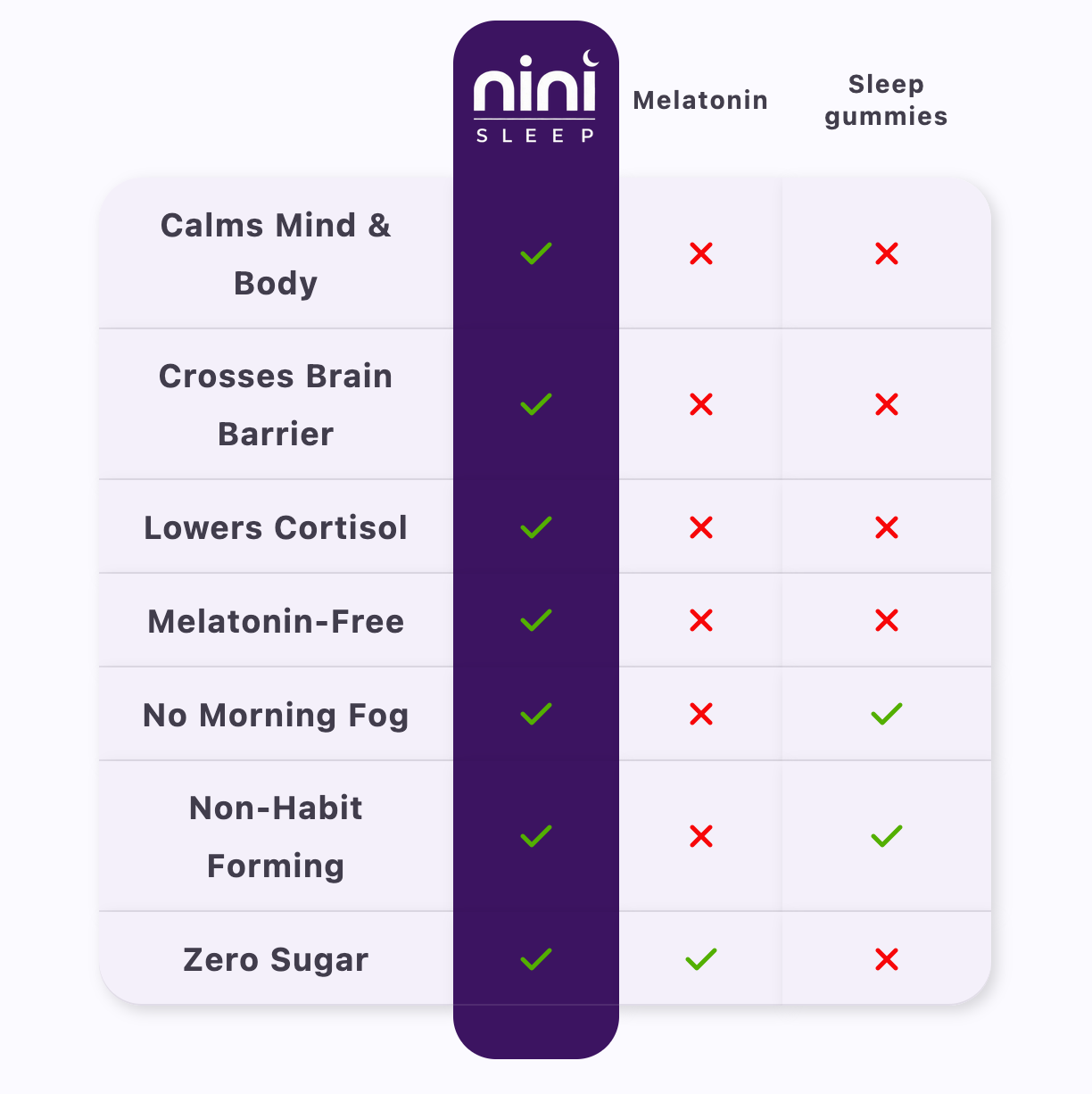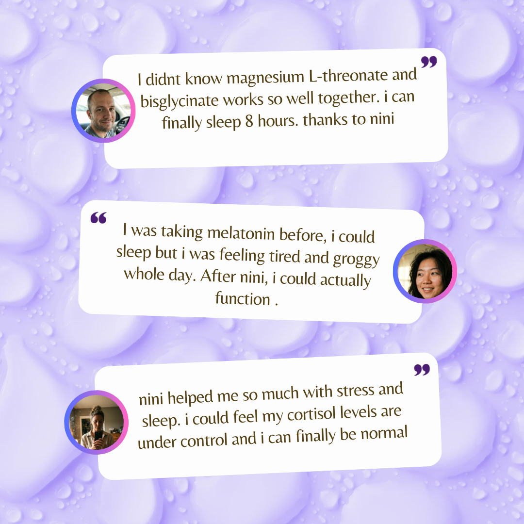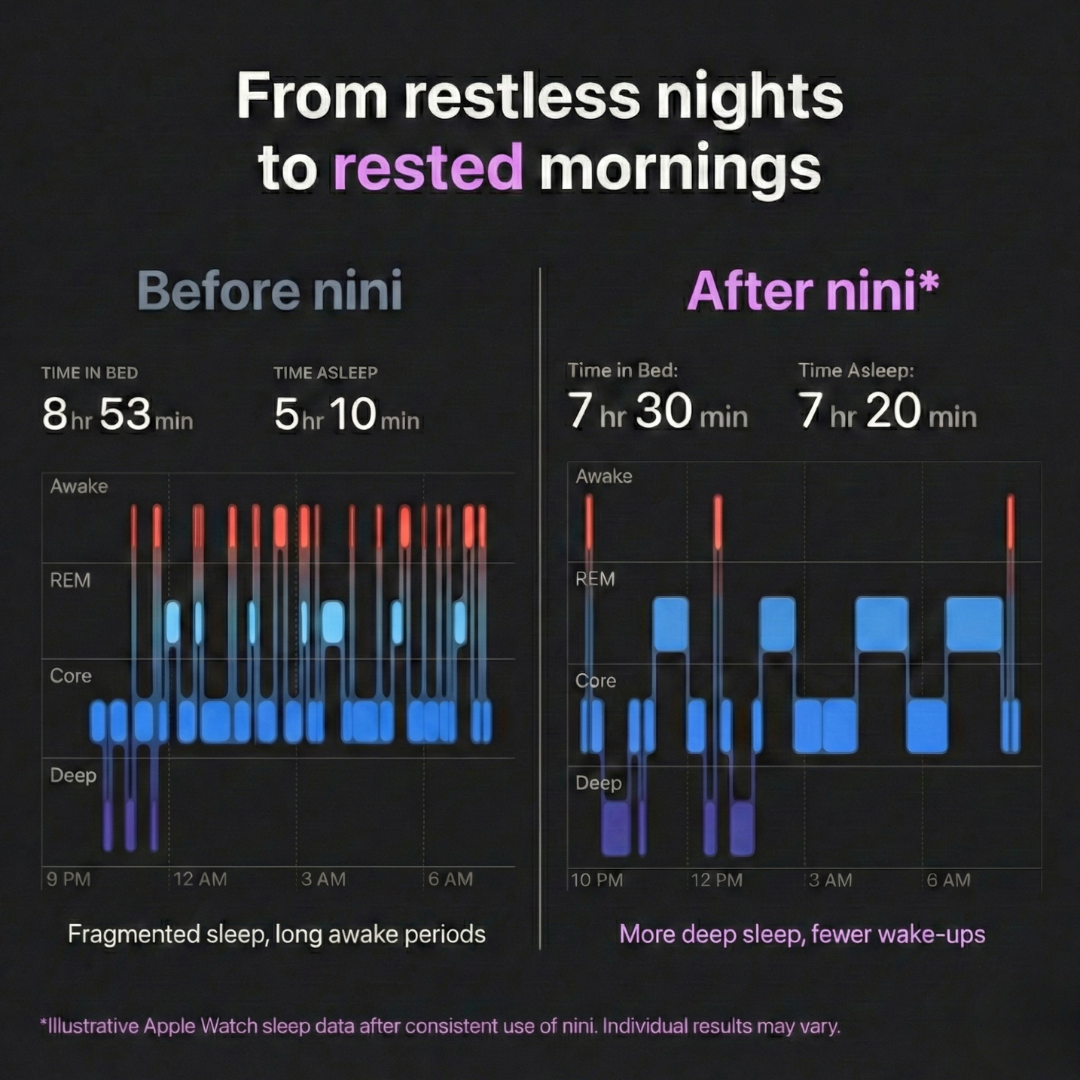 This is the Nini difference. You open your eyes feeling sharp, not groggy. Because we don't use synthetic sedatives, there is no "hangover." You start your day feeling fully charged and ready to go, without needing three coffees to function. -